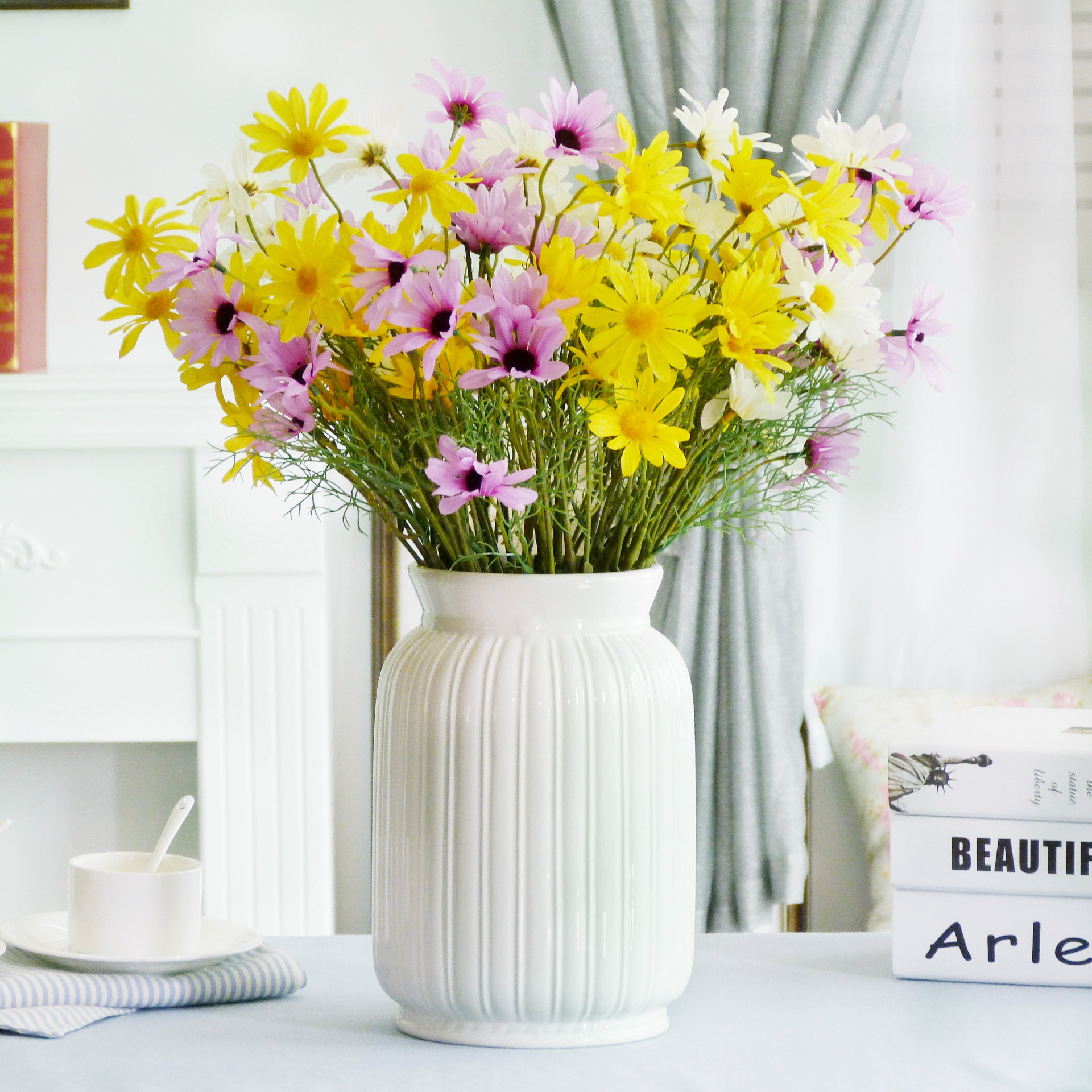 زهرة واحدة مع شعور طازج وجديد من المروحة الأدبية والفنية Xiao ، وهو مناسب جدًا لتزيينه بنوع إناء بسيط.